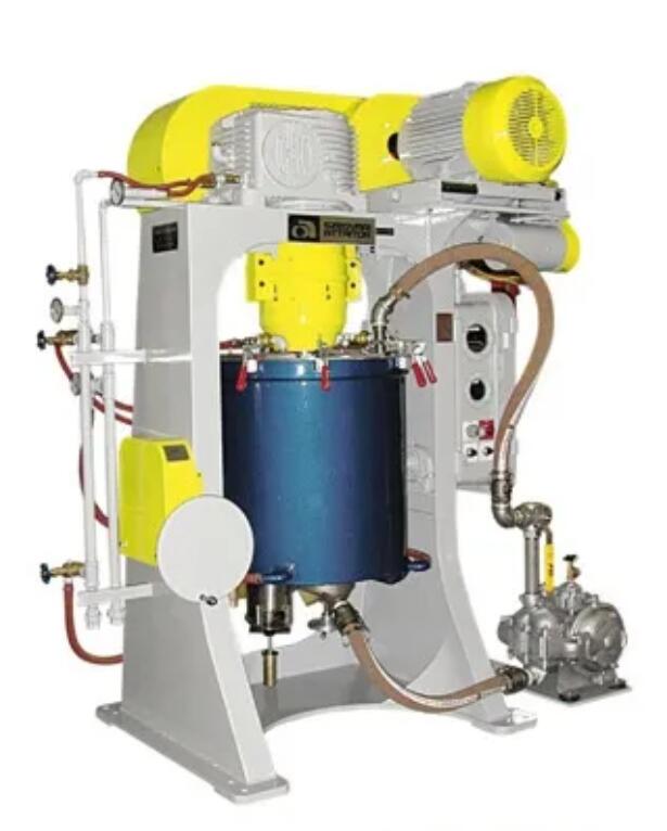 l 研磨缸底部設(shè)有一個(gè)球形卸料閥,以及能方便卸出研磨介質(zhì)的斜槽。帶有浮動(dòng)Telflon密封水冷缸蓋,能最大限度的減少溶劑的損失。