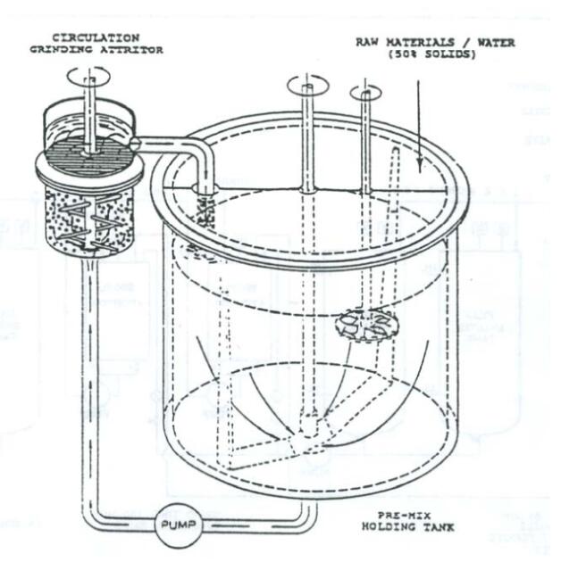 (2) 精確稱量的配方,通過大批量預混料的方式,然后泵入幾個攪拌磨研磨。該工藝消除了小批量之間的差異,并提供了均勻的最終粉末(參見圖5)。