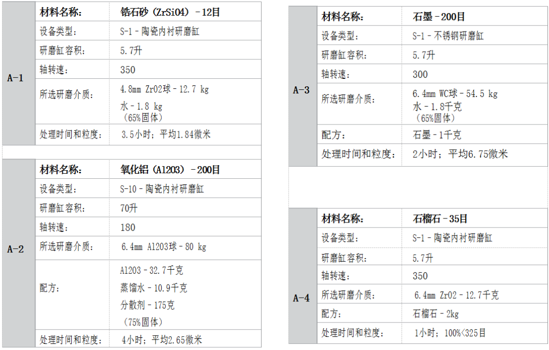 連續(xù)濕磨工藝數(shù)據(jù):